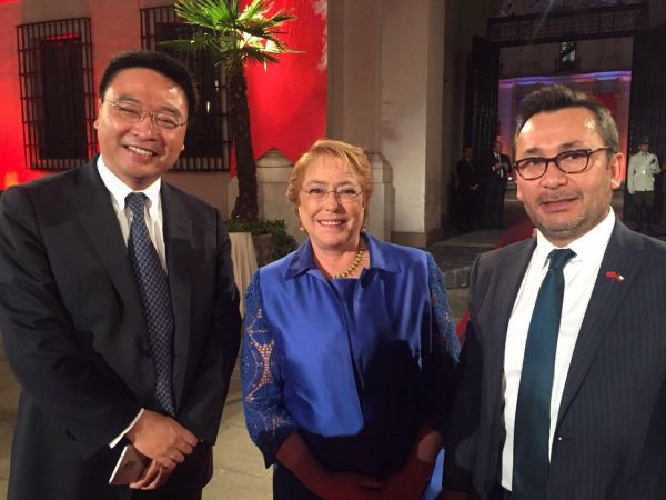 Pie de foto: Qin Hua (CEO de Huawei), Michelle Bachelet, Gerente de Asuntos Corporativos de Huawei: Marcelo Pino