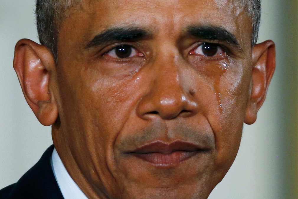 El ex-presidente Obama no puede contener las lágrimas cuando habla del esfuerzo para reducir el uso de armas en Estados Unidos.