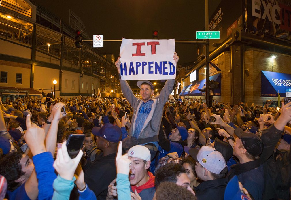 Fans del Chicago Cubs se toman las calles para celebrar el triunfo de su equipo sobre «The Cleveland indians» quitándole el titulo del equipo con más títulos durante 108 años.