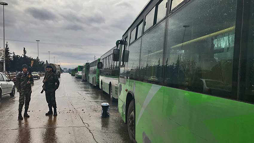 La cadena pública turca TRT señala que los primeros autobuses han salido ya de Alepo pero la agencia Anadolu informa de que un convoy de civiles fue tiroteado al alcanzar la periferia y regresó a la ciudad.