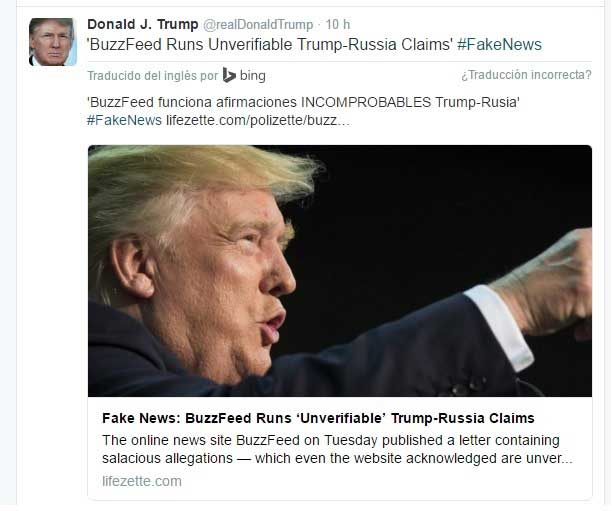Tras la publicación del informe por parte del portal BuzzFeed News y de diversos artículos en medios como la CNN, el The Washington Post o el The New York Times, Trump dijo a través de su cuenta de Twitter que se trata de una «noticia falsa» producto de una «total caza de brujas política».