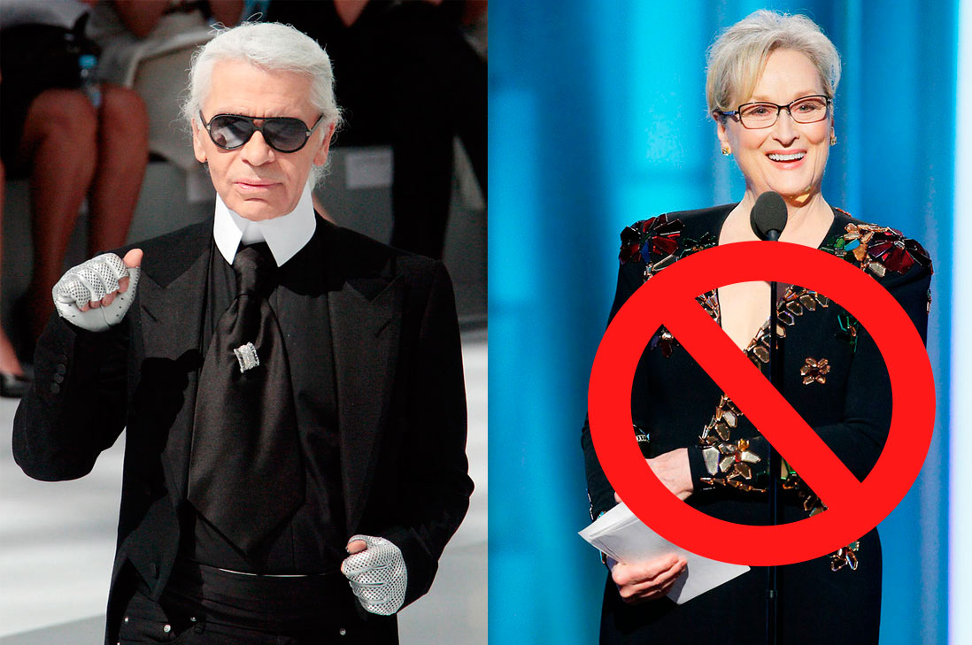 Lagerfeld ha revelado que Streep finalmente no llevará un vestido de Alta Costura de Chanel en la próxima ceremonia de los Oscar, tal y como estaba previsto, debido a que el equipo de la actriz ha pedido una compensación económica. «Después de haberle regalado un vestido que cuesta alrededor de U$100 mil , luego descubrimos que encima teníamos que pagar. Les damos vestidos, se los hacemos, pero nosotros no pagamos», ha comentado el káiser en WWD sobre la política que sigue Chanel en este sentido.