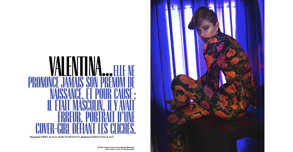 Fotografiada por los famosos Met Alas y Marcus Piggot, y con el trabajo estilístico de la editora del medio, Emmannuelle Alt, la imagen de portada va acompañada del título «La belleza transgénero: cómo están revolucionando el mundo». La cuenta oficial de la revista en Instagram hizo el anuncio ayer, y afirmó que estaban orgullosos de celebrar la belleza transgénero con modelos como Valentina Sampaio, «que posa por primera vez para una portada de Vogue, y está cambiando el rostro de la moda y deconstruyendo prejuicios».