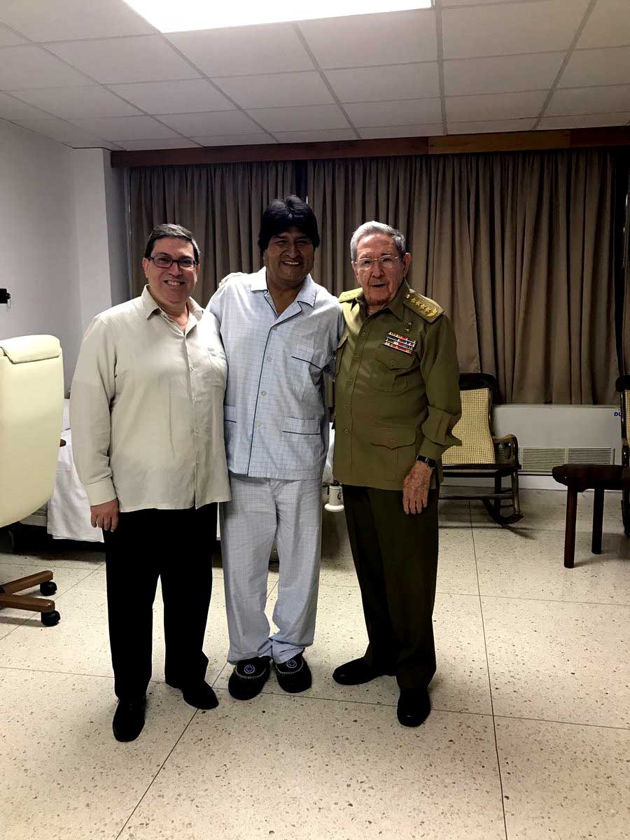 «Un encuentro fraterno entre dos grandes líderes del Abya Yala. El comandante Raúl Castro y el Canciller de Cuba conversaron 1/2 hora con Evo», escribió en su cuenta twitter.