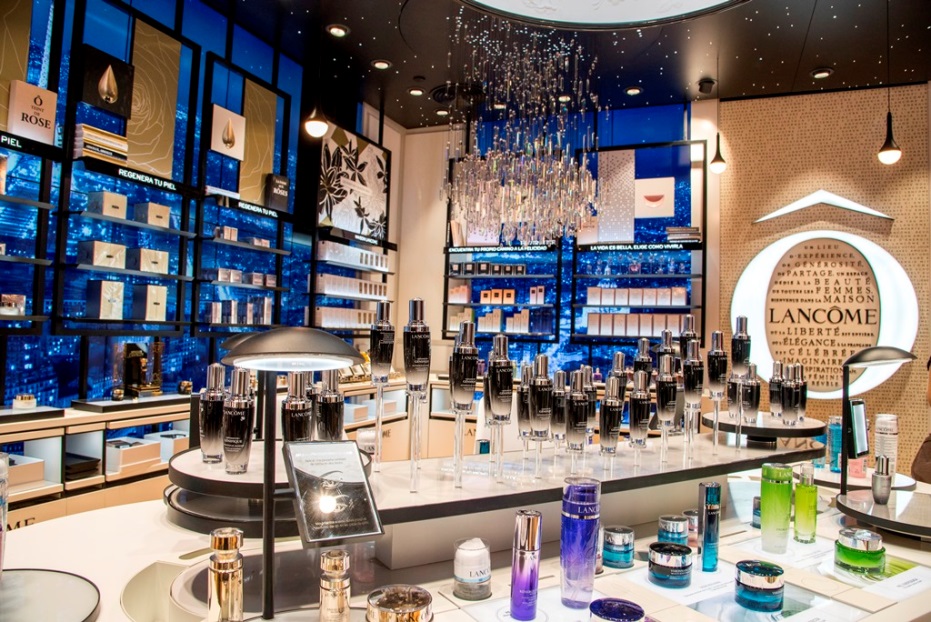 El espacio recrea un loft parisino con la vista sobre la ciudad y su famosa Tour Eiffel combinando modernidad y la herencia francesa de la marca. Con más de 70 Mt2 la boutique se destaca por sus pantallas LED que visten todas las paredes de la tienda haciéndote sentir como si estuvieras mirando las románticas calles parisinas. Las “sharing tables” es lo que primero te da la bienvenida y te invitan a tocar, jugar con los colores, las texturas y recibir consejos por parte de los maquilladores. Una boutique que sorprende por sus detalles, un cielo estrellado en vez de un techo, lámparas talladas, piso de roble, que expresan el prestigio de una marca de lujo como Lancôme.