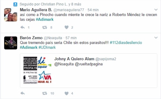 Barón Zemo precisa “que tremendo país sería Chile sin estos parásitos!!! #112díasdesilencio #Adimark #UDImark”.