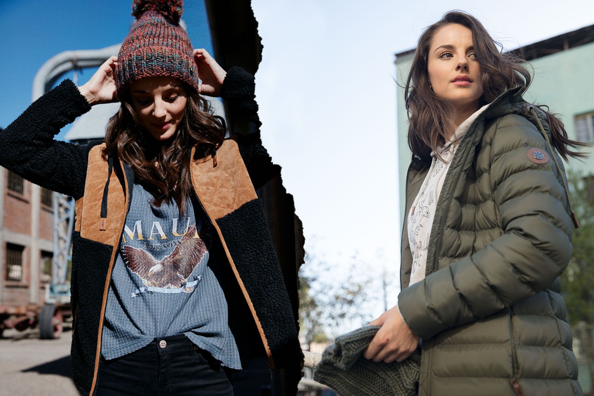 Chaquetones de chiporros hay de dos tipos: el esponjoso y el rústico forrado con jersey, con telas procesadas y aplicaciones de cotelé. Chaquetas de jeans forradas con piel y bordadas. Distintos tipos de parkas, donde brillan las metalizadas, las largas y las clásicas, prendas que perfectamente se pueden combinar con gorros lisos, con diseños simples, pompones y en los mismos colores de moda de Maui And Sons.