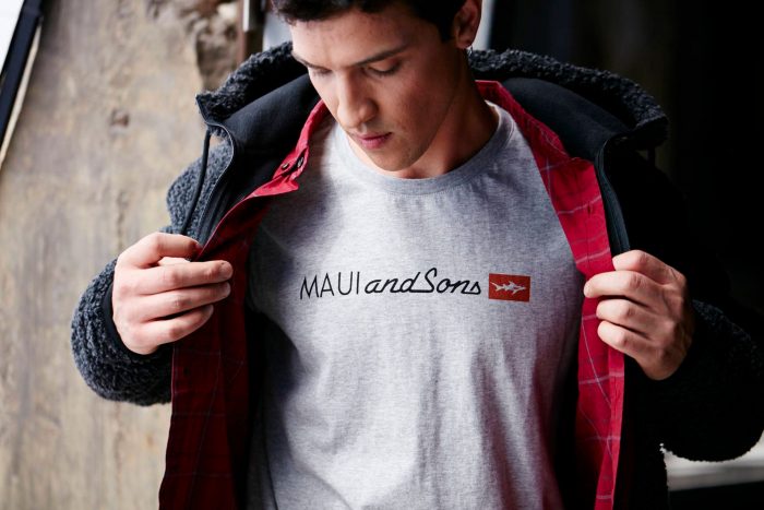 La actual propuesta de la Casa del Tiburón tiende a simplificar las líneas y aplicar colores más tranquilos y a usar mucha tipografía con la marca en las distintas prendas. “En el caso de los hombres usamos colores azules y negros, con procesos como acid y snow-wash para darle a la ropa una onda desgastada y pigmentada. Nos preocupamos también de los cordones, ojetillos y tiradores de cierre, pequeños detalles que hacen la diferencia”, comenta Loreto Moreno, Jefa de Diseño de Maui And Sons.