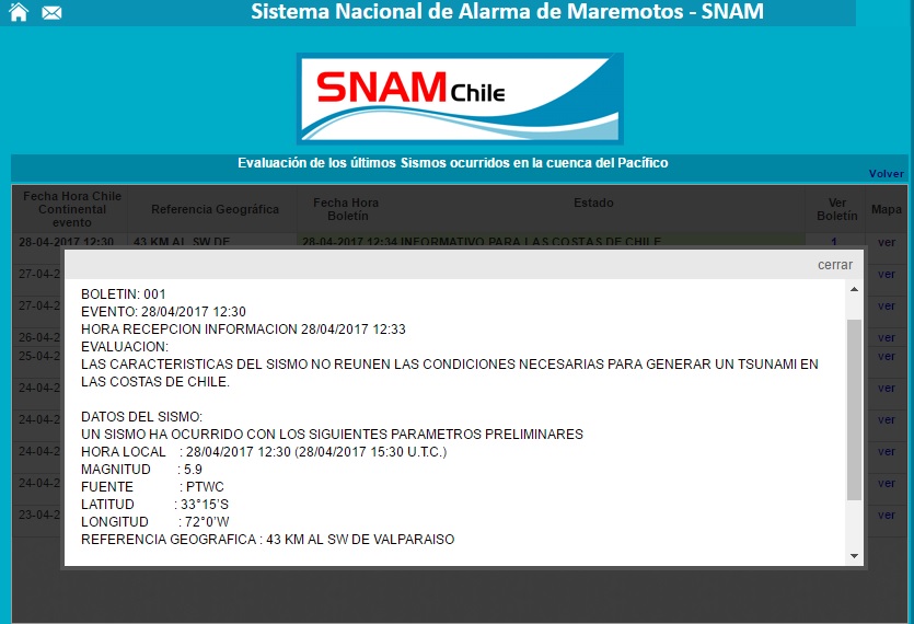 Sin embargo, el Centro Sismológico Nacional de la Universidad de Chile señala que sismo fue de 5,8 grados y se ubicó a 41 kilómetros al Noroeste de El Tabo.