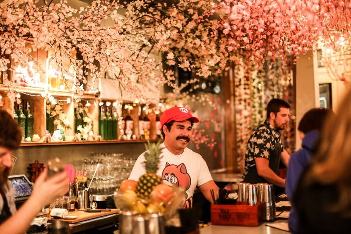 Se llama Pub Cherry Blosson, y es un bar temporal creado por The Drink Company. “Japón siempre ha sido una fuente de inspiración para mi, y siendo de Washington, la época de floración de los cerezos es algo que esperamos cada año,” dijo Derek Brown, de Drink Company. “Este bar temporal une algunas de mis cosas favoritas bajo un mismo tejado, incluyendo cócteles clásicos y nostalgia por Mario.”