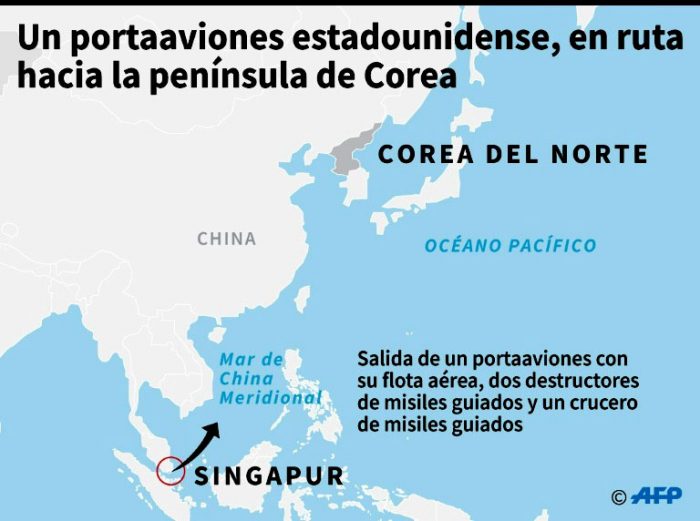 Anunciada menos de 48 horas después del ataque estadounidense contra una base aérea siria, la decisión de enviar el portaaviones ‘USS Carl Vinson’ y su flota a aguas cercanas a la península coreana, mencionando claramente la amenaza nuclear que representa Pyongyang, sonó a advertencia y vuelve a inquietas al mundo.