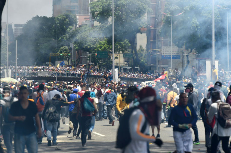 Los enfrentamientos se iniciaron cuando los manifestantes, convocados por la dirigencia, decidieron a última hora marchar hacia la Defensoría del Pueblo, en el centro, bastión del chavismo y donde están las sedes de los podres públicos.