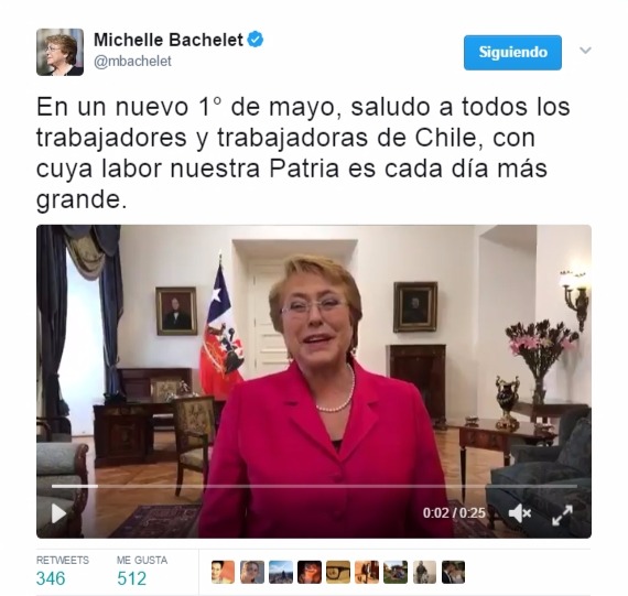 — Michelle Bachelet (@mbachelet) 1 de mayo de 2017