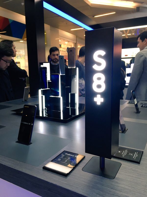 El anuncio de la fecha de llegada a tiendas se produjo la noche anterior, 16 de mayo, a las 21:00 horas, cuando, tras dos días de proyecciones de alta calidad en el Costanera Center en las que se pudo ver un transbordador y un reloj en cuenta regresiva, el cohete despegó, con efectos especiales incluidos, y la imagen de un astronauta apareció, en clara referencia a la pantalla “Infinity Display” y al concepto “Sin Bordes, sin límites” del Galaxy S8 y S8+. Además, durante la jornada, focos de alto alcance iluminaron la ciudad de Santiago desde el icónico edificio.