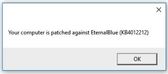 Para encontrar más información puede ingresar a: https://www.welivesecurity.com/la-es/2017/05/16/check-eternalblue-pc-parcheada-wannacry/