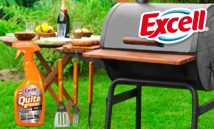 Ahora, si la parrilla lleva tiempo sin uso y necesitamos quitar la grasa o suciedad pegada, el experto recomienda utilizar el Quitagrasas Pro de Excell que puede eliminar hasta la suciedad más rebelde. “La limpieza con cebolla u otros secretos de los parrilleros no logran desinfectar la parrilla, por lo tanto esta labor se debe realizar con un producto con alto poder desengrasante que logre eliminar fácilmente la grasa reseca que se acumula en estas superficies”, explica Marcial Fernández.
