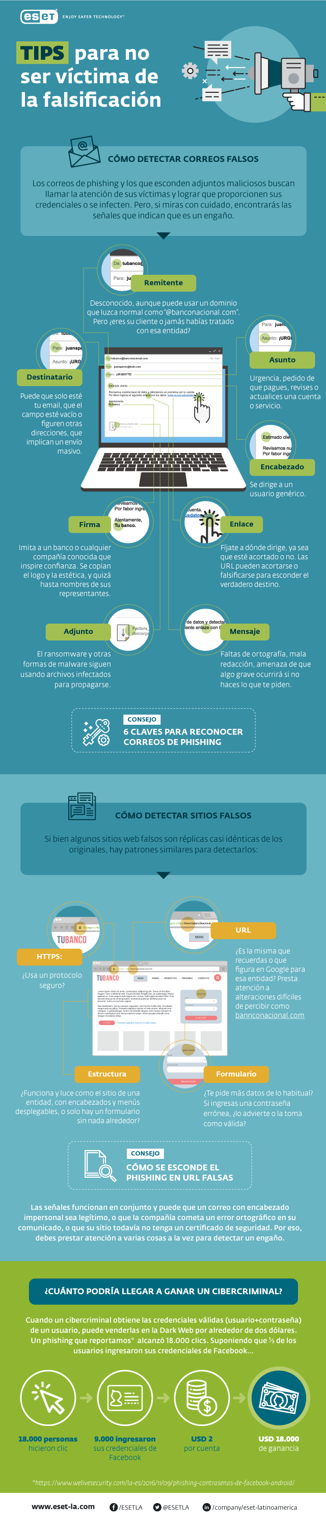 En esta infografía ESET reúne algunos tips para no ser víctima de falsificación: