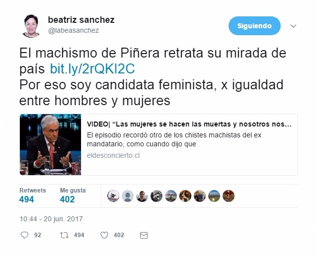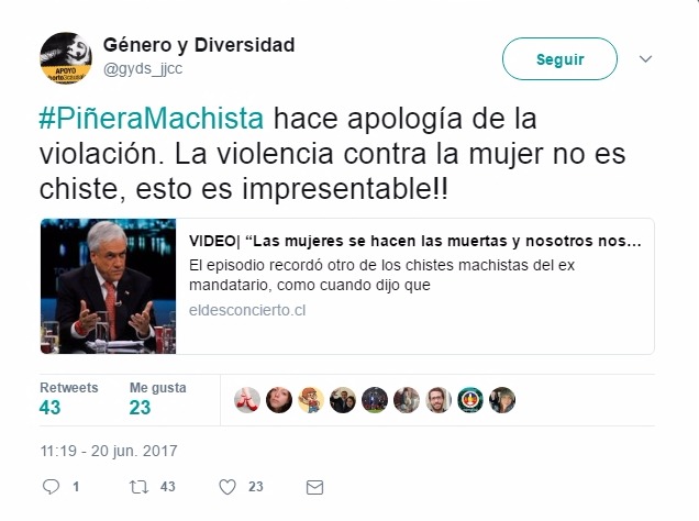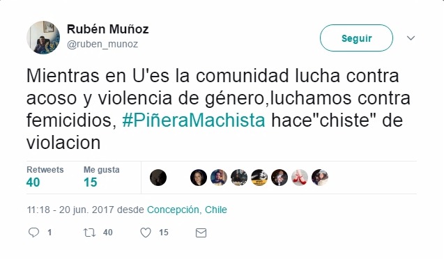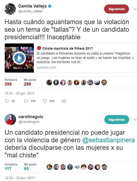 Tras esto las redes sociales, especialmente los internautas de Twitter se ensañaron con el ex Presidente, criticándolo por su broma machista e instando a su ex vocera, Cecilia Pérez, de criticar a su abanderado por el “chiste de mal gusto”.