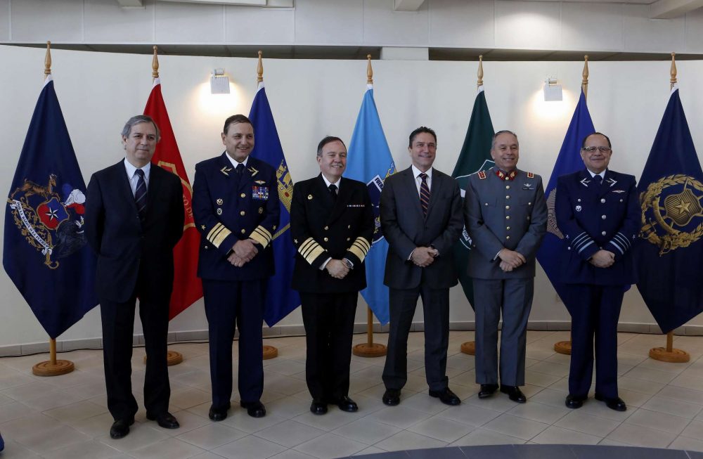 El Ministro de Defensa Nacional, José Antonio Gómez, encabezó el aniversario del Estado Mayor Conjunto (EMCO), junto al Jefe del EMCO, general de Aviación, Arturo Merino y a los comandantes en Jefe de las tres Ramas de las Fuerzas Armadas, el Subsecretario de Defensa, Marcos Robledo.