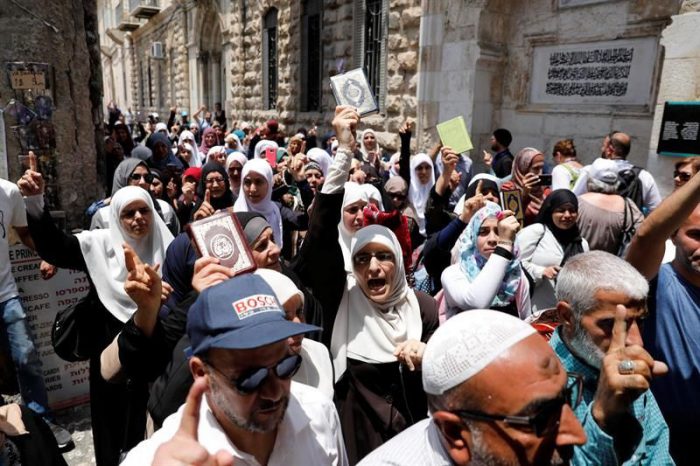 Desde hace una semana, los enfrentamientos son cotidianos entre las fuerzas de seguridad israelíes y manifestantes palestinos, que denuncian la instalación impuesta por Israel de detectores de metales en los accesos del tercer lugar santo del islam, en la ciudad vieja de Jerusalén.