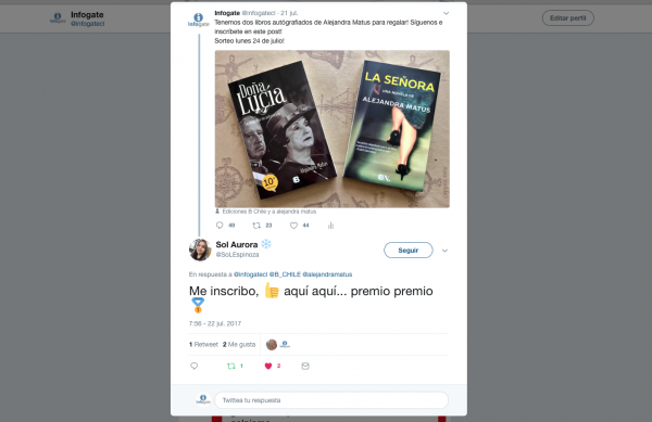 Agradecemos a todos las personas que participaron en este espectacular concurso gentileza de Ediciones B y de la escritora Alejandra Matus, cada uno se lleva una edición autografiada:
