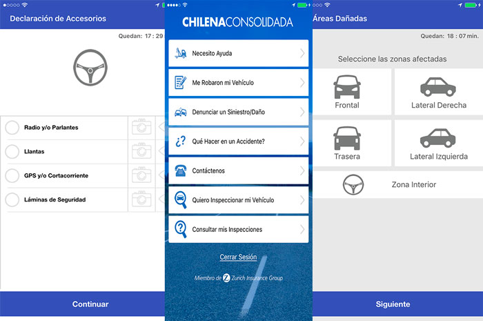 Siempre a la vanguardia en el mercado y buscando conectarse con las nuevas necesidades del consumidor 2.0., Chilena Consolidada Seguros-Zurich Chile estrenó las nuevas funcionalidades de su APP “Chilena Móvil”, la que desde ahora otorgará la posibilidad de realizar la inspección del vehículo a través del smartphone, por lo que el usuario no tendrá que moverse de su escritorio, ahorrándose una gran cantidad de tiempo al no tener que visitar los centros de inspección de la compañía o esperando a un inspector externo. Además, se reduce el riesgo de que ocurra un accidente durante el trayecto a efectuar el trámite.