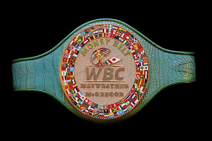 En la última conferencia de prensa ofrecida por los peleadores, el presidente del World Boxing Council, Mauricio Suleiman, mostró el cinturón del ganador, que sirve como el símbolo de victoria del máximo combate en la historia.