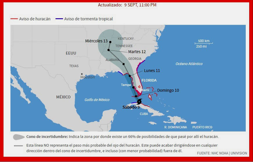 Pasadas las 6 de la tarde, hora norteamericana, el Presidente Donald Trump declaró Estado de Cartástrofe Natural para todo el estado de La Florida.