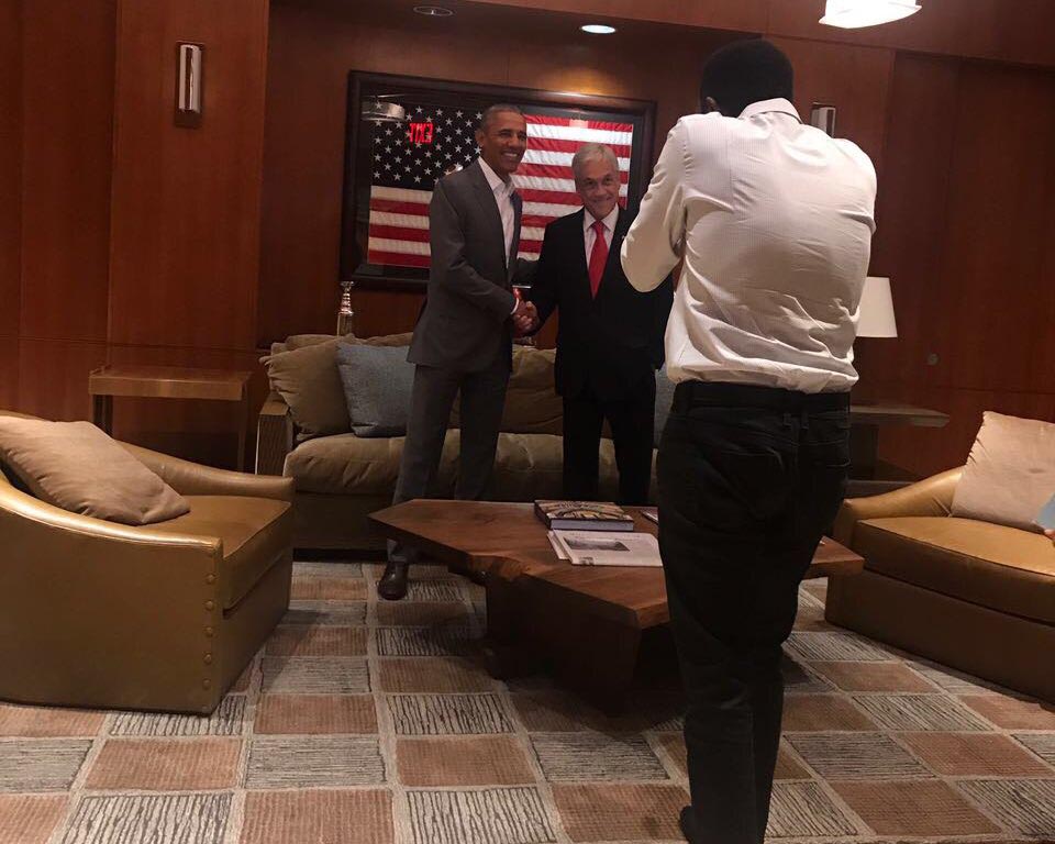 «Gran encuentro con @BarackObama. Compartimos visión sobre calentamiento global, salud, Venezuela y Latam. Esperamos tenerlo pronto en Chile», tuiteó Piñera, que se esfozó por mostrar el encuentro publicando la foto de este jueves con una vieja foto cuando Obama visitó Chile.