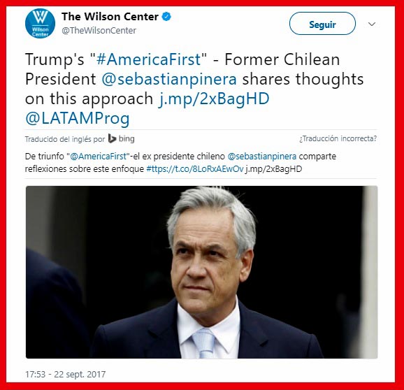 Quién sí consignó la exposición del candidato presidencial chileno fue el Wilson Center: