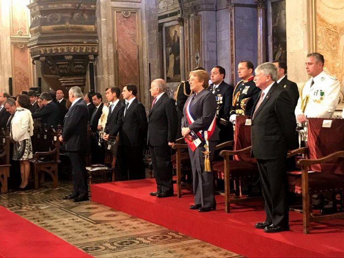 A su llegada, la máxima autoridad del país fue recibida por el Canciller del Arzobispado de Santiago, Presbítero Oscar Muñoz; por el Vicecanciller del Arzobispado de Santiago, Presbítero Jorge Sáez Lascani y por el DEÁN de la Catedral, Monseñor Juan de la Cruz Suárez.