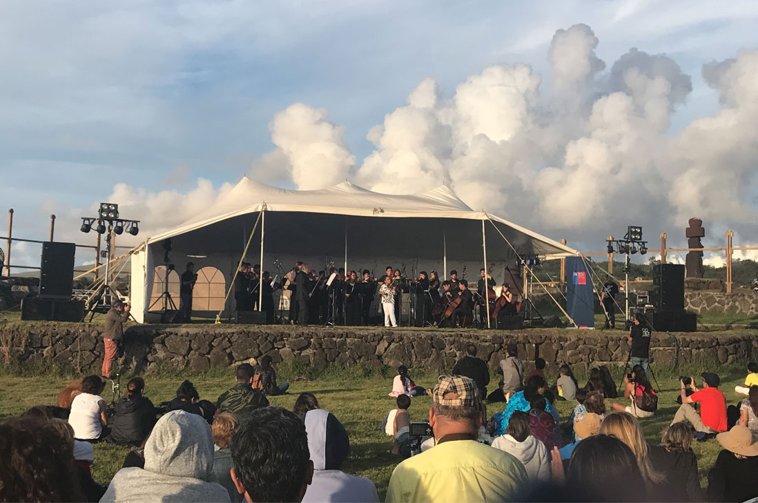 El domingo 22 de octubre, a las 12:00 horas y posterior a la misa, se realizó un concierto en la iglesia Santa Cruz de Hanga Roa donde se interpretaron obras de Mozart, Haydn y Tchaikovsky. Pero el concierto principal fue realizado en Hanga Vare Vare, lugar donde se celebra la tradicional fiesta anual Tapati. Aproximadamente 600 personas se acercaron a la hora del atardecer a este tradicional escenario de Hanga Roa para disfrutar obras de Mozart, Wiren, Vivaldi y Tchaikovsky interpretadas por los jóvenes músicos.