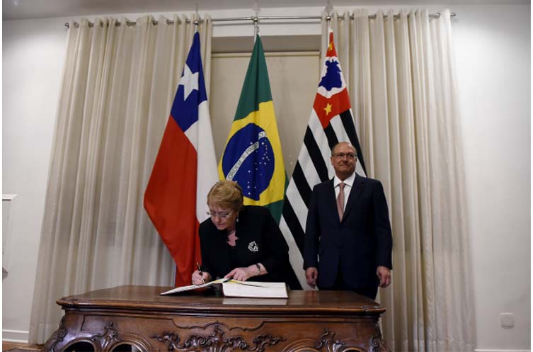 Además de esa reunión, la Presidenta Bachelet, llegó hasta el Palacio dos Bandeirantes, en São Paulo, para reunirse con el Gobernador de dicho Estado, Geraldo Alckmin, con quien abordó los alcances del Protocolo de Intenciones entre la República de Chile y el Estado de Sao Paulo, firmado el 31 de agosto de este año.