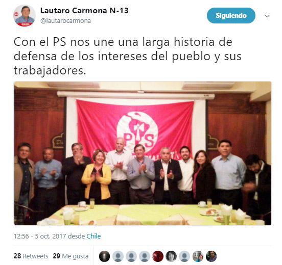 La nota socialista señala: «Conforme a la ley de partidos políticos y a nuestro estatuto, el Partido Socialista ha resuelto de forma democrática proclamar a Lautaro Carmona en Atacama», señaló Álvaro Elizalde, presidente del Partido Socialista de Chile, al arribar a la capital regional de Atacama. Elizalde se reunió con alcaldes, consejeros regionales y concejales socialistas de la región, así como candidatos al Congreso y al Consejo Regional».