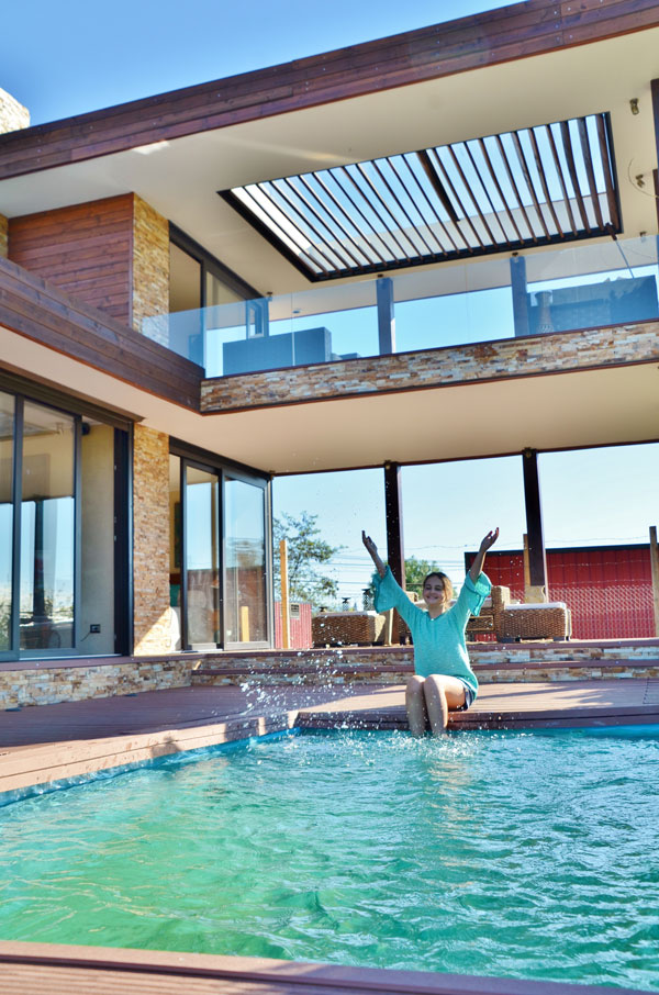 “Nuestros materiales, el uso de decks en el exterior, madera de abeto canadiense en algunas partes de la casa y, sobre todo, el reemplazo de muros por grandes ventanales, nos entregan un resultado que, a la vista de todos, es realmente grandioso y que, sin embargo, su interior puede ser incluso mucho más pequeño que los proyectos que podemos encontrar en diversas constructoras”, señala la especialista.