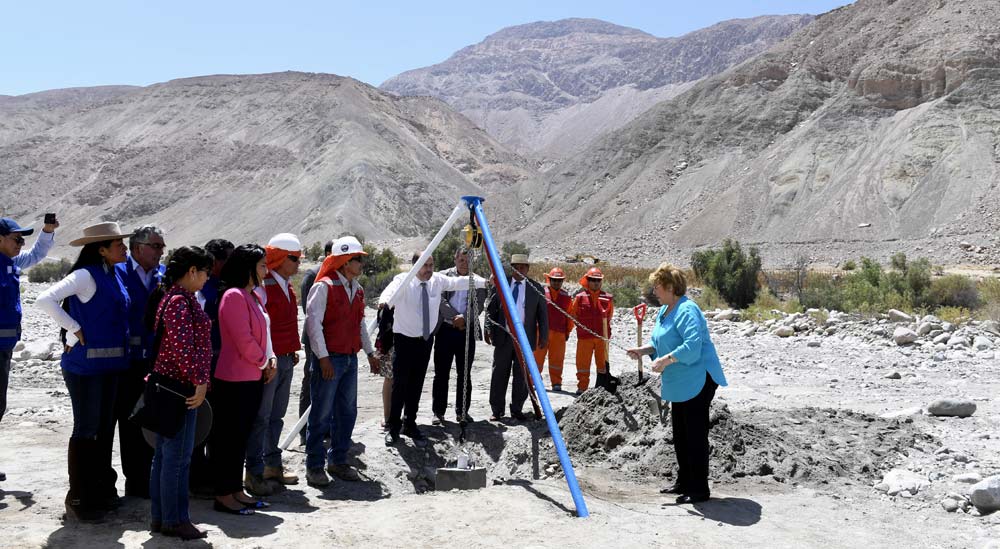 Este martes, al mediodía, la Presidenta de la República, Michelle Bachelet, junto al ministro de Obras Públicas, Alberto Undurraga, llegó hasta el Valle de Lluta en la comuna de Arica, para dar el inicio oficial a las obras de construcción del futuro Embalse Chironta, que permitirá mejorar las condiciones de seguridad en el riego de más de 500 predios, equivalentes a 2 mil 384 hectáreas, y ayudará a mitigar los daños que producen las crecidas del río Lluta por las lluvias altiplánicas. Este es uno de los proyectos más importantes del Plan Especial de Zonas Extremas e involucra una inversión superior a los $83 mil millones.