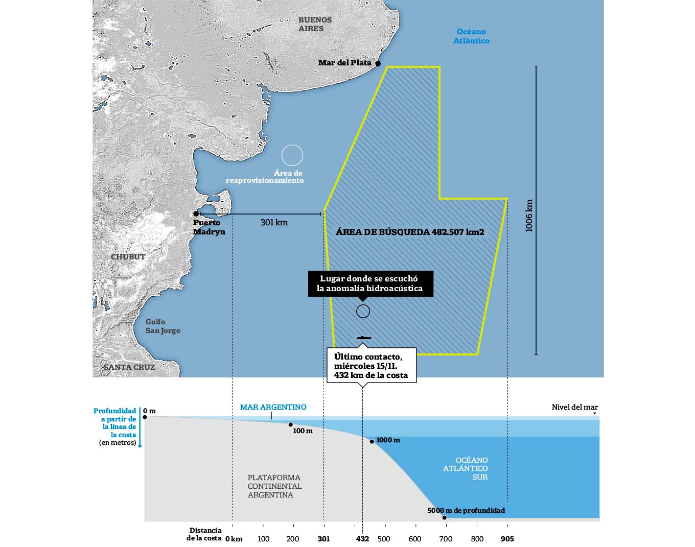 La búsqueda se ha transformado en un operativo internacional de rescate en el que participan cerca de 4.000 personas y unos 30 aviones y buques de la Argentina, Estados Unidos, Reino Unido, Brasil y Chile.