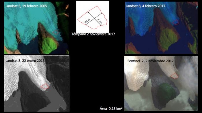 “Esta es una situación esperada, pero lo más singular y anecdótico es que es un témpano de dimensiones mucho más grandes, lo cual llama notablemente la atención. Esta lengua en el sector Este es un área relativamente confinada y que tiene un frente bastante regular con un ancho del orden de los 800 metros y se encuentra justo al lado de un sector rocoso conocido como ‘la isla’, donde desde allí se ha desprendido este témpano de aproximadamente 350 por 380 metros”, apunta el glaciólogo del INACH.