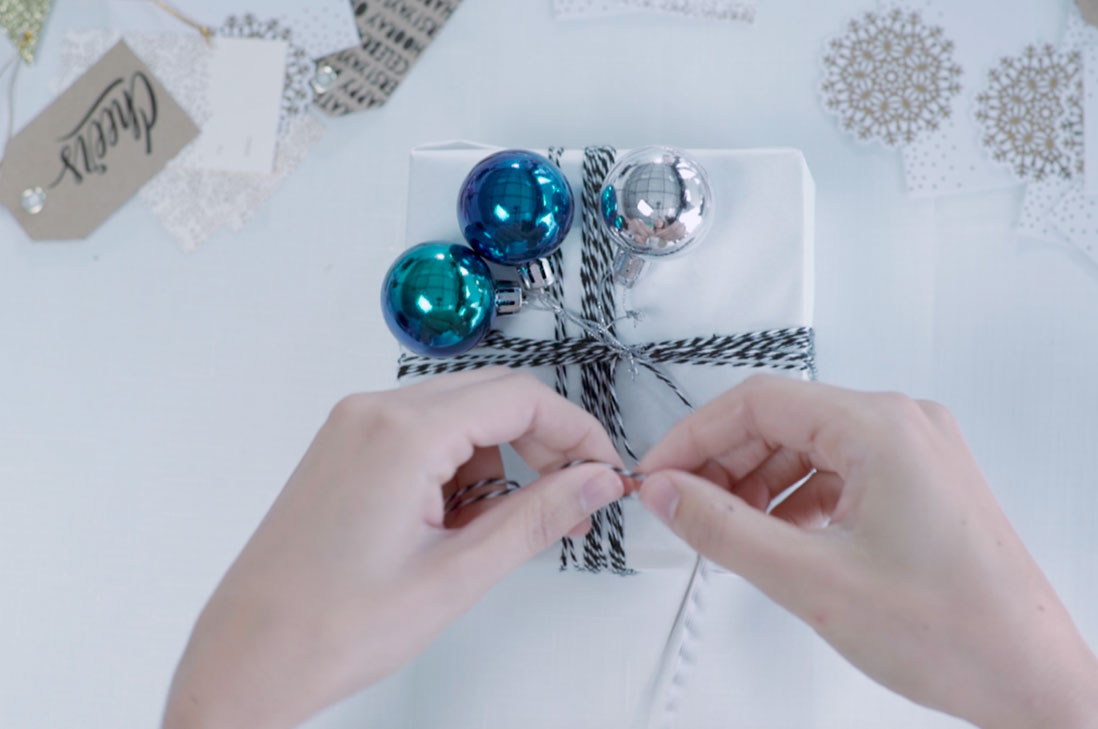 Una buena opción es aprovechar adornos navideños que ya no utilices para incluirlos como decoración en tus regalos.