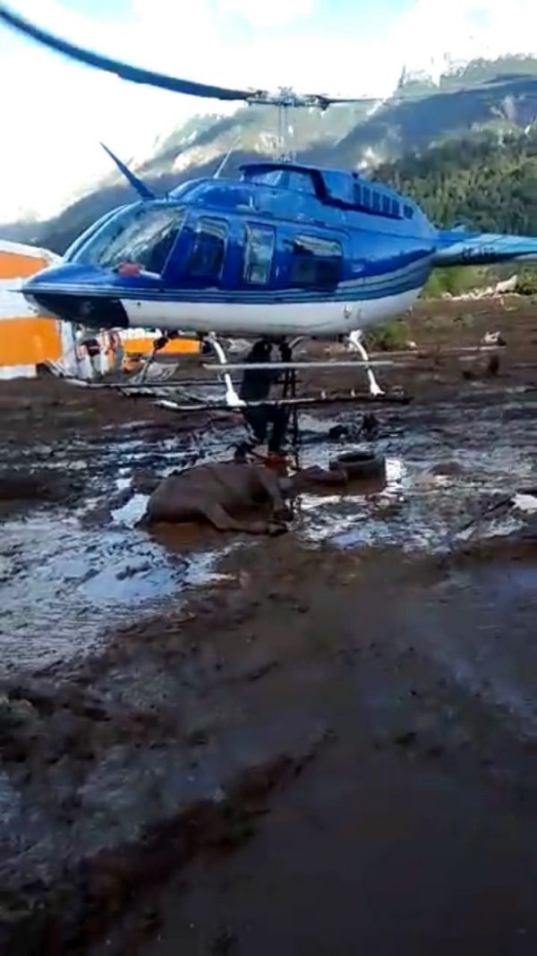 El día lunes 18, el doctor Alejandro Llanos, contacta a un helicóptero privado de rescate, y se realiza el rescate de 8 bovinos que estaban atrapados, desde la noche anterior; resultando un rescate exitoso de todos los animales.