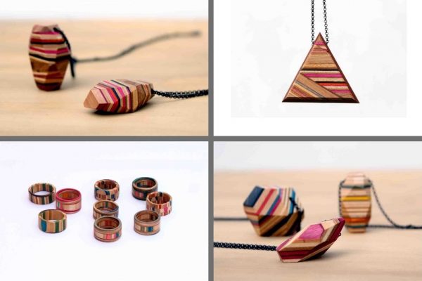 Dentro de la diversidad de expositores destaca Juan Carlos Barrera Gallardo con su emprendimiento Rubrum, un proyecto experimental de recuperación y reutilización de maderas en desuso, principalmente patinetas quebradas y maderas de desecho urbano que ya han cumplido su ciclo útil. A estas se les da una nueva forma para generar piezas de joyería, objetos de arte, decoración y juguetes sustentables.