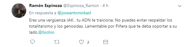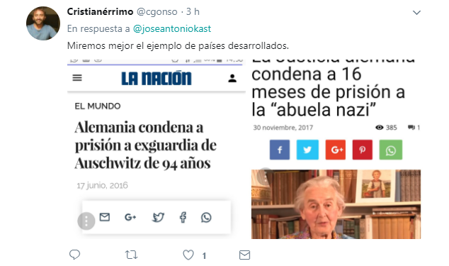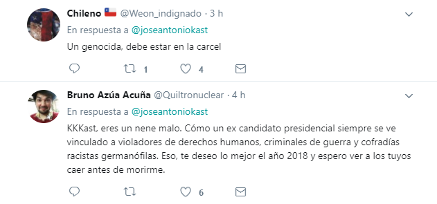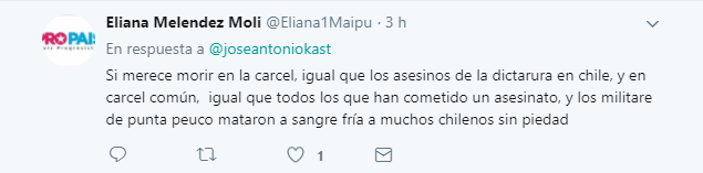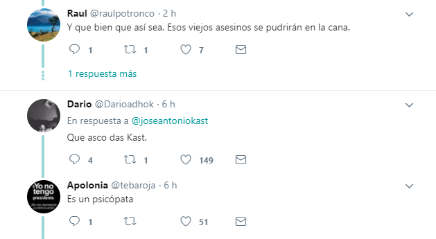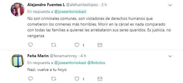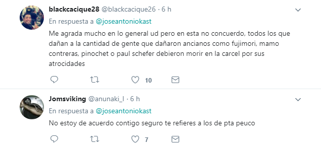 Un twitter puesto por el ex candidato presidencial de la ultraderecha, José Antonio Kast, causó la reacción de los internautas, ya que la comparación hecha por el indulto a Alberto Fujimori y su comparación con la situación con los presos por derechos humanos presos en Punta Peuco, causa resquemores por la posibilidad que se aplique un “perdonazo” para quienes cumplen condena.