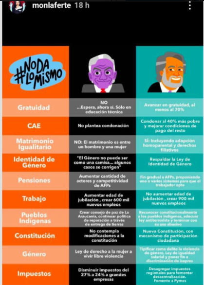 A través de una gráfica comparativa entre los dos aspirantes a La Moneda, Mon Laferte deja de manifiesto que su respaldo es al periodista.