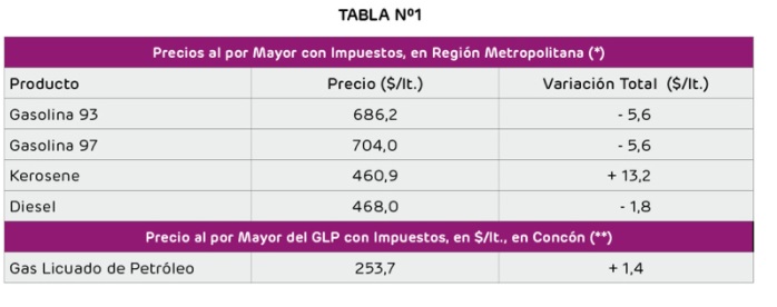 Por su parte, el kerosene o parafina tendrá una fuerte alza de +13,2 pesos, quedando en $460,9, y el gas licuado quedará en 253,7 pesos, ya que también subirá +1,4 pesos respecto al periodo anterior.