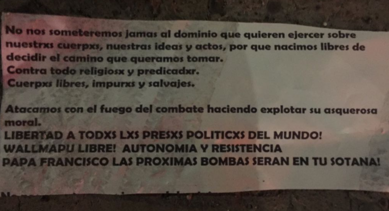 Hay que hacer presente que estos atentados ocurren a días de que el Papa Francisco llegué a Chile para una visita eclesiástica en donde visitará Santiago, Temuco e Iquique.