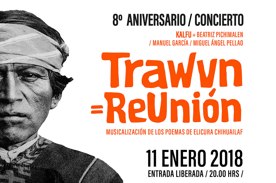 Este 11 de enero se lleva a cabo la celebración del 8° aniversario del Museo de la Memoria y los Derechos Humanos, hecho que tendrá como temática principal a los pueblos originarios. El evento contará con la presentación del grupo nacional Kalfu, el cual va a presentar Trawvn = Re – unión, disco que contiene poemas musicalizados en torno a la poesía de Elicura Chihuailaf y que cuenta con la colaboración compositiva de destacados artistas nacionales, tales como Manuel García, Joe Vasconcellos, Francisca Valenzuela, Nano Stern, entre otros. La cita es a las 20.00 horas y la entrada es de carácter gratuito.