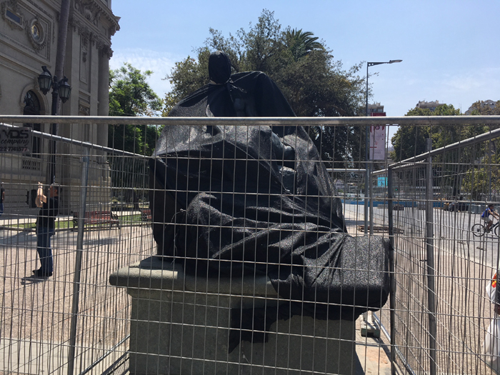 La dirección del MNBA ya tomó contacto con autoridades tanto del municipio como con los organizadores de la carrera, con el fin de identificar responsables y llevar a cabo las acciones correspondientes de reparación, luego de los peritajes del caso. Asimismo, se están realizando las gestiones para que este Monumento Nacional sea restaurado lo antes posible por personal especializado en esculturas en metal”.