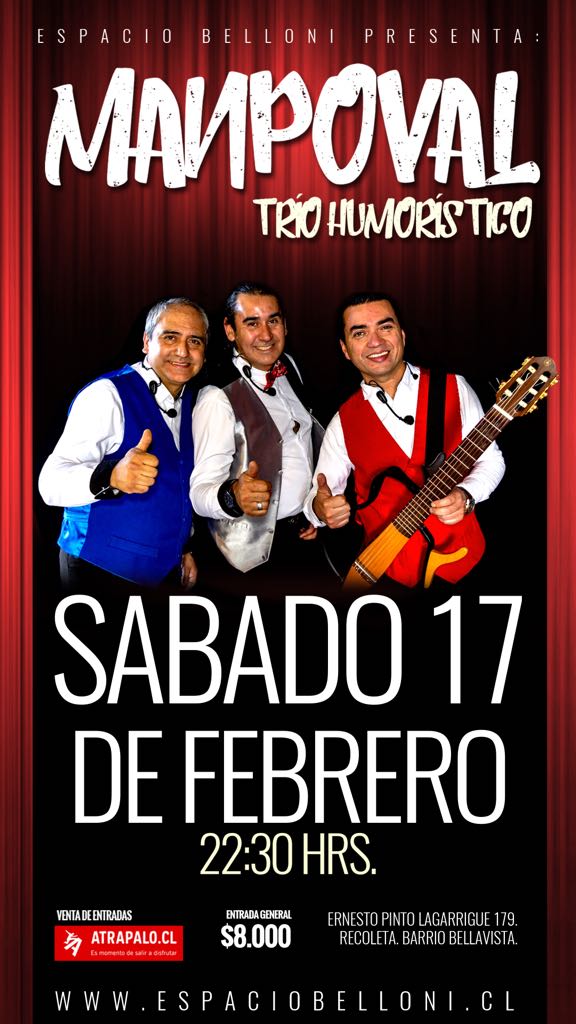 Rodrigo Manríquez, Marcelo Poblete y Eric Valdebenito, el trío Manpoval, llegarán hasta Espacio Belloni para mostrar su renovado espectáculo de humor. Con “media censura”, como ellos lo denominan, harán reír a toda la familia el próximo sábado 17 de febrero.