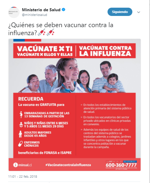 El Ministerio de Salud decidió adelantar para el próximo 7 de marzo la campaña de vacunación contra la influenza, sumándose a esto el sistema público como privado y adultos mayores que viven en hogares.