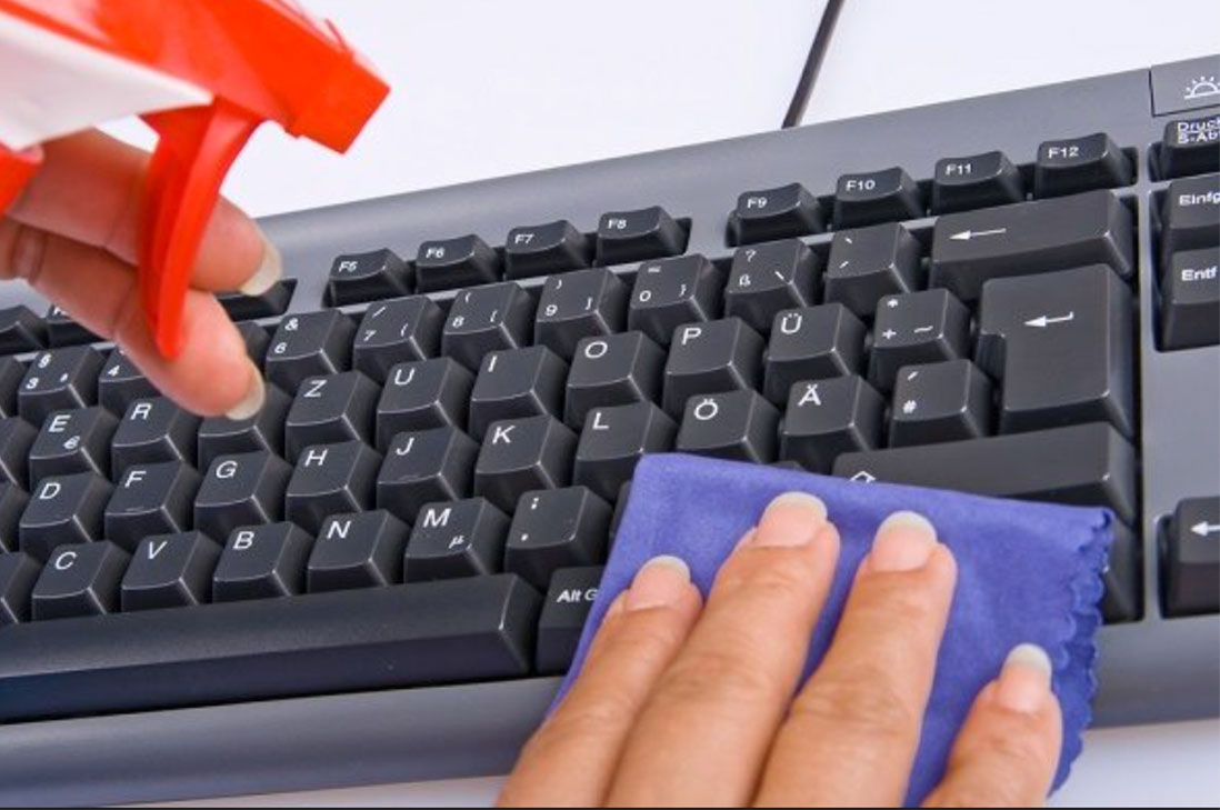 Teclados de computadores: ¡Increíble!, pero cierto. En este elemento se pueden acumular suciedades que propician el desarrollo bacteriano e incluso que favorecen la aparición de hongos que causan infecciones en piel y uñas. La limpieza continúa es muy necesaria, porque se trabaja a diario con un gran y silencioso enemigo.